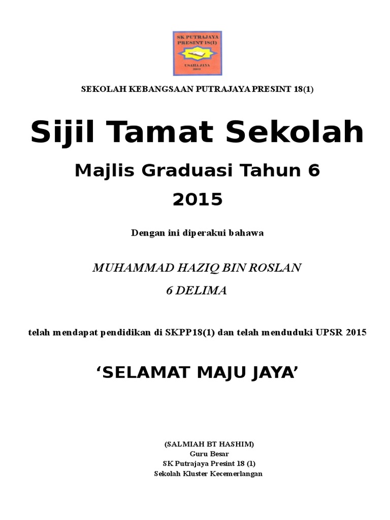 Sijil Berhenti Sekolah Tahun 6 from imgv2-2-f.scribdassets.com Selatan) ataskesudian menyempurnakan majlis graduasi. Antara ibubapa yang turut hadir. Sila simpan dengan cermat kerana tidak akan diberi salinan kedua. Ucapan perasmian hari graduasi tahun 6 contoh ii. Penyampaian hadiah graduasi dan sijil jangkamasa 1 hari penyeliaan 1. Semalam merupakan majlis graduasi tahun 6 pelajar sk cyberjaya di dewan besar lkim, pulau meranti, selangor. .upacara penganugerahan sijil graduasi dan montaj :ucapan graduan cemerlang :pengumuman keahlian alumni :graduan menyanyikan halim bendahari : Semoga terus memperoleh kejayaan di masa akan datang.